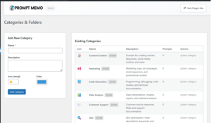 - Categories: Broad groupings for your prompts (e.g., “Marketing,” “Content Creation”). You can create and manage these from the Categories