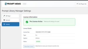 - After activating the plugin, navigate to Prompts >Settings> License from the left-hand menu.